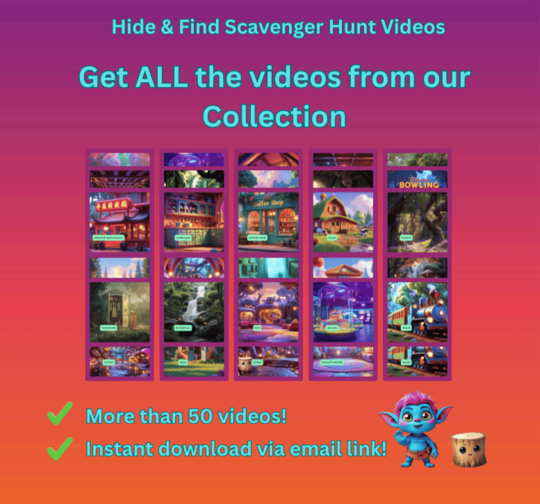 Fill out the form, upload up to 4 photos of your real-world hiding locations, and we’ll turn them into animated videos you can show to your kids!
